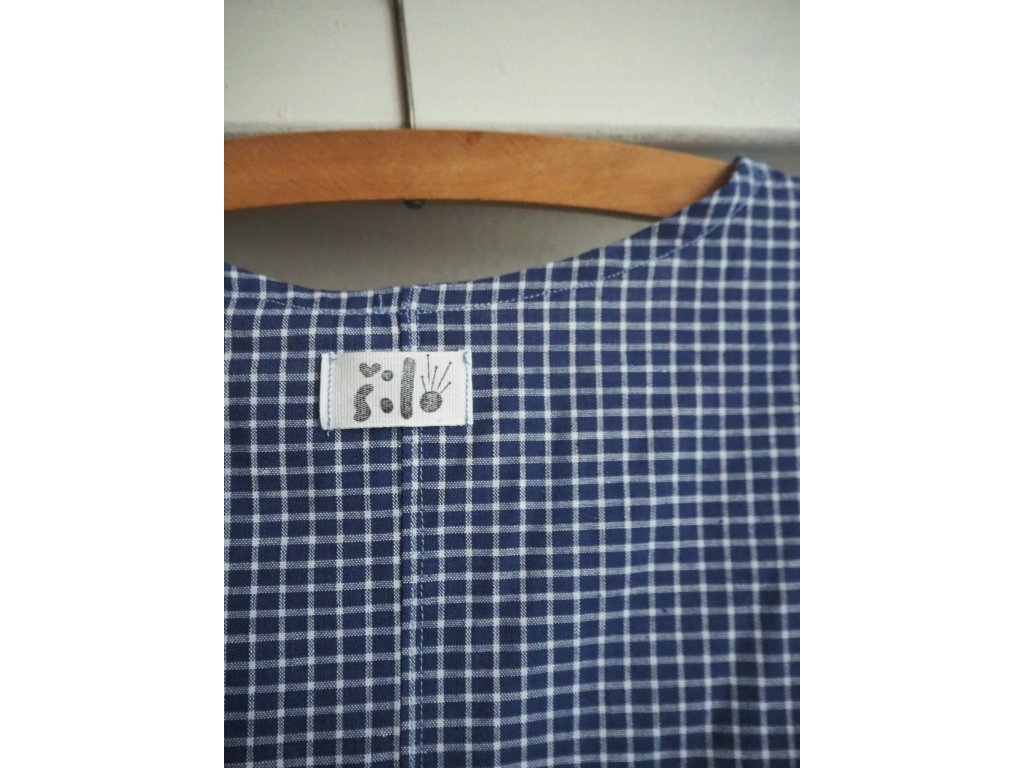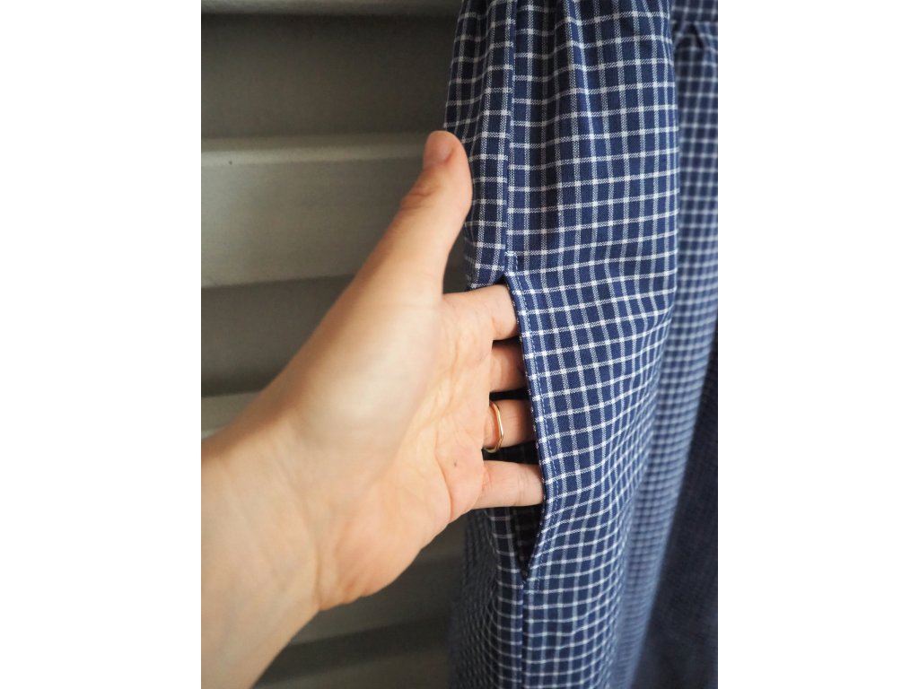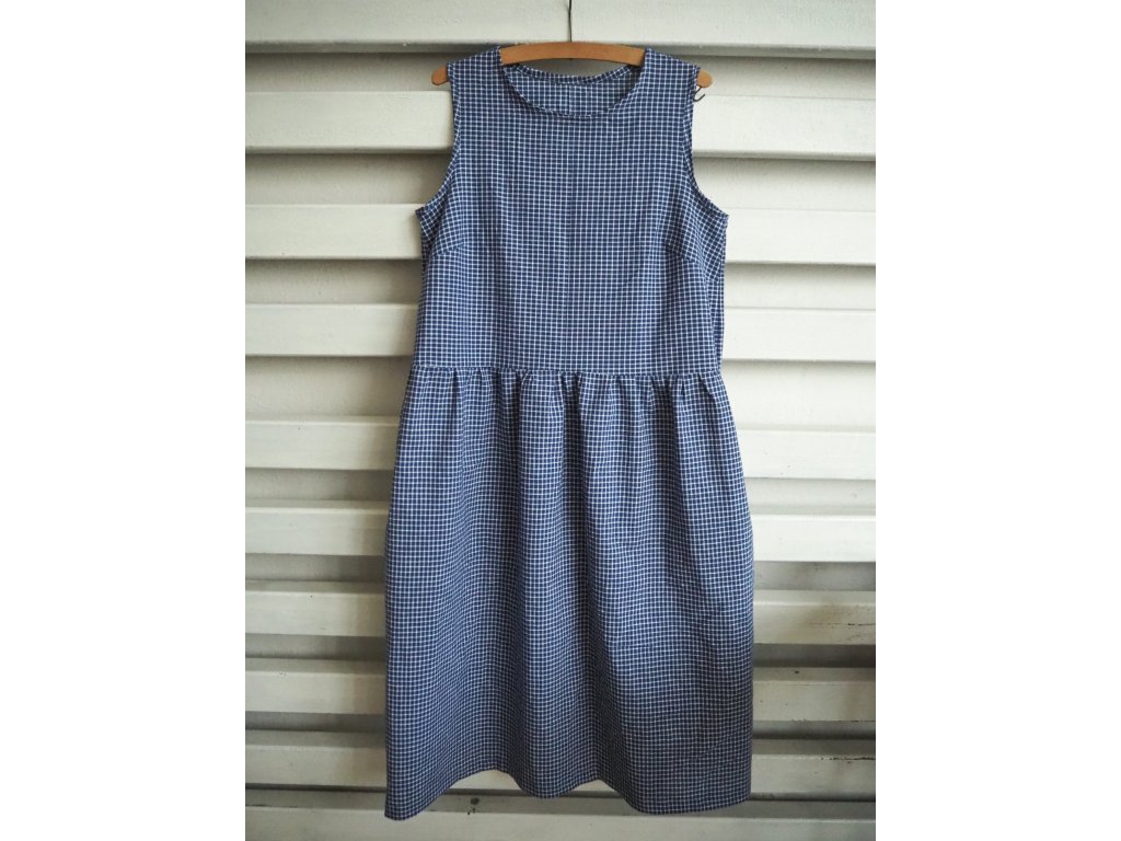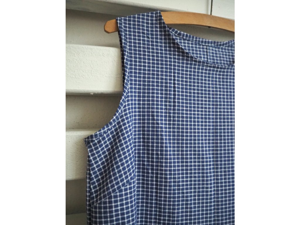 Šaty bez rukávů ve velikost M. Jsou vhodné do teplejších dní nebo skvělé k vrstvení. Na hrudníku mají prsní záševky, aby lépe sedly postavě. Nechybí ani praktické kapsy v bočním švu. Šaty jsou ušity z recyklované secondhand bavlny v jediném kuse, takže stejné na ulici nepohledáte.